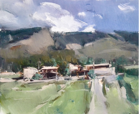 陈晓油画作品《村落写生》